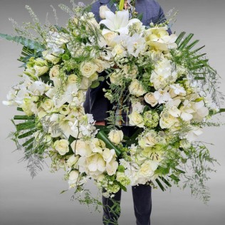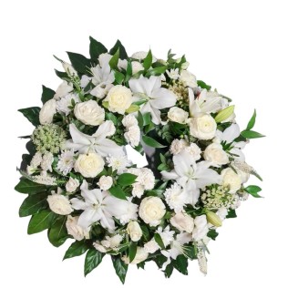 Iti oferim o gama insemnata de modele de coroane funerare rotunde din flori naturale, pentru ca punem pret pe sentimentele si dorinta ta de a lasa un ultim omagiu.