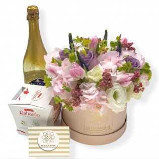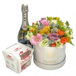 - Aranjament cu flori colorate, sampanie si bomboane raffaello399,00 LeiLivrare in: Bucuresti si Ilfov