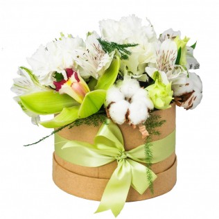 - cutie rosie cu trandafiri orhidee lisianthus si frezii199,00 LeiLivrare in: Bucuresti si IlfovEpuizat din stoc